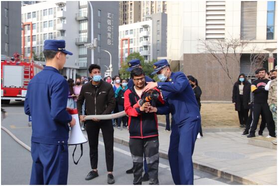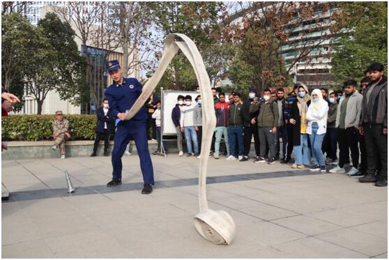 首先,全体留学生在汇诚公寓进行了火场应急疏散逃生演练。随后,特勤站教官以“消防安全基本知识及灭火器器材使用、救援设备近距离接触、火场应急疏散逃生”等方面为留学生进行培训,通过近距离现场讲解相关消防安全知识和展示消防救援设备,为师生示范并让部分师生体验了灭火器材及各种救援设备操作方法,使大家更进一步了解了灭火器材在扑救初起火灾中重要作用。