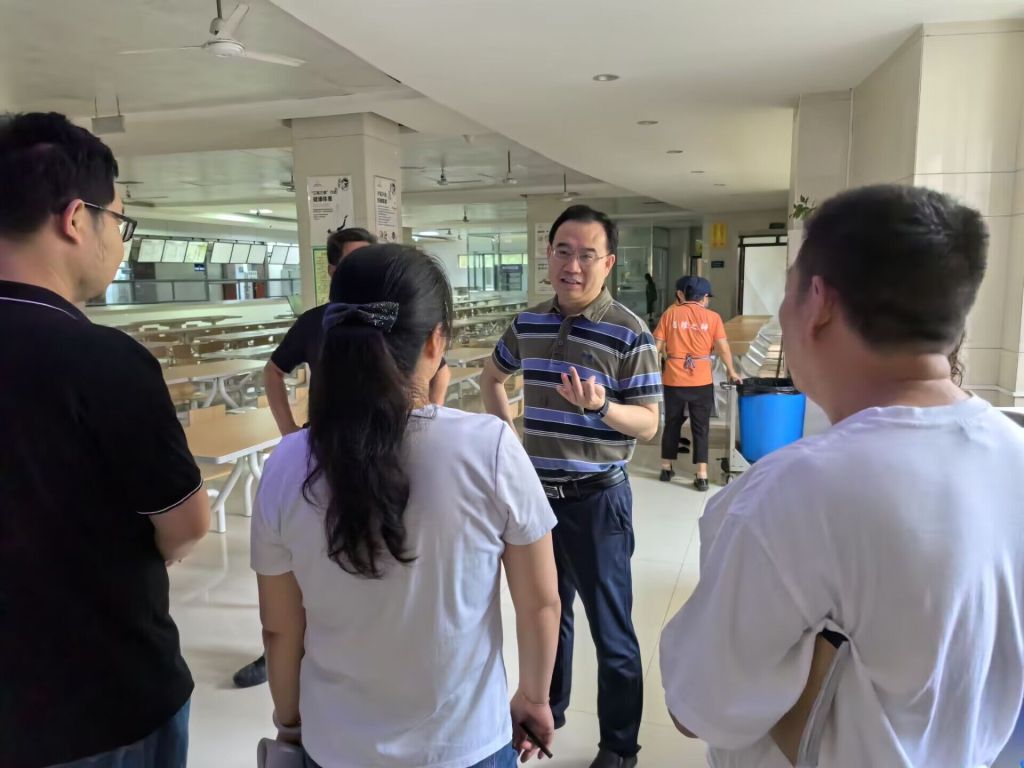 王云甫走进汇雅、汇德学生公寓实地检查消防设施维护情况,提醒做好学生防火灾等消防安全教育,提醒同兴楼食堂、南苑食堂做好暑期维保。王云甫检查期间详细了解假期留校学生管理、学生公寓整修改造和防汛措施落实等情况,重点查看公卫大楼外围施工场地安全生产情况。