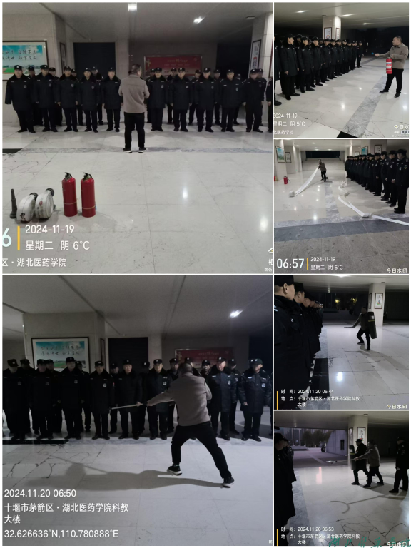 11月19日,技能培训教官马和平向全体保安队员详细讲解了火灾知识预防、逃生自救技巧、消防器材使用等内容,现场操作演示了灭火器使用、消防水带铺设、水枪连接等实用技能,同时对如何扑灭初期火灾进行了现场演练。11月20日,对应对突发暴恐袭击进行了专题培训,教官对如何报警、稳控现场、控制“暴恐人员”等反恐防暴知识进行讲解,并现场展示了盾牌、钢叉等防暴器械的使用方法,对如何联合制服持刀(械)违法分子进行了反复演练,使每个参训保安员都能熟练掌握。