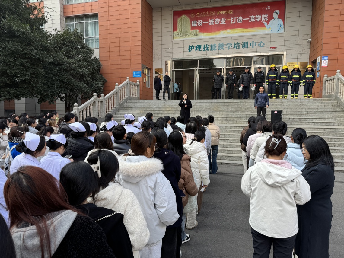 本网讯(通讯员 吴敏)为进一步增强师生消防安全意识,提升应对突发火情的自救互救与应急疏散能力,响应学校“百日行动”号召,2025年12月18日上午,护理学院联合校beat365官网于八号楼组织开展了消防应急疏散演练。护理学院无课教职工、2025级全体主要学生干部及寝室长、部分实验课学生共计300余人参与了演练。