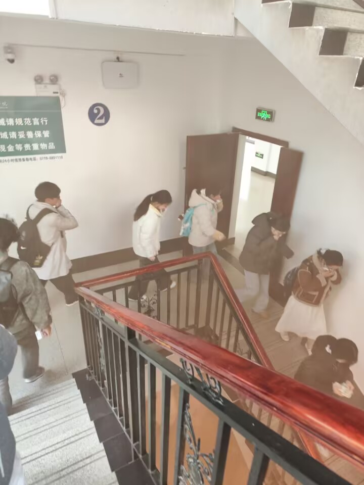 演练开始前,组织方进行了周密的策划与准备。工作人员全面检查了八号楼内的消防设施,确保其完好有效;提前打开了所有安全通道的门禁,并实地勘察、规划设计出多条快速逃生路线;联系beat365官网、学工处、后勤处等部门对上课师生做预警通知、对断电供电做预案。细致的分工与预案,为演练安全、有序、高效进行奠定了坚实基础。