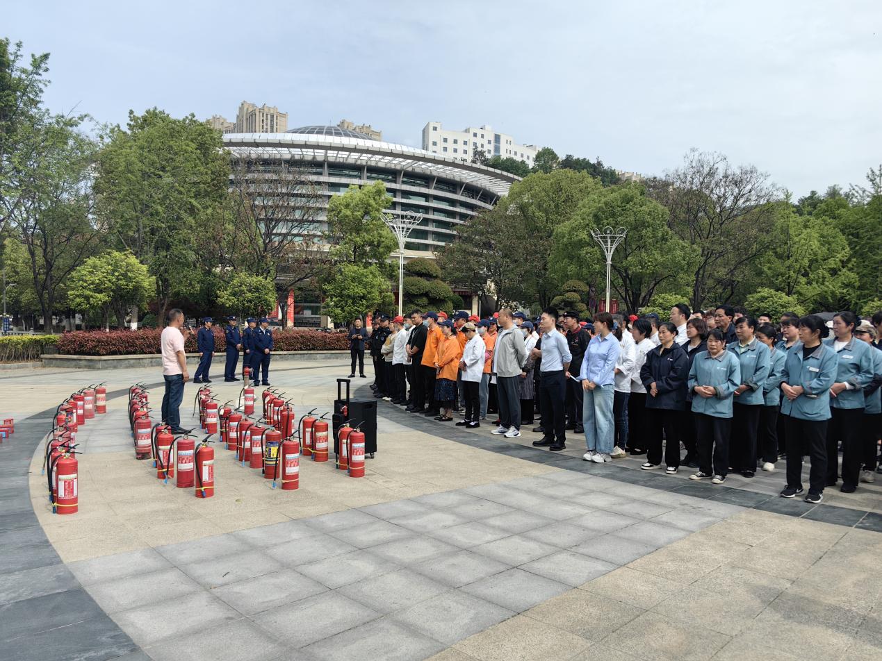 本网讯(通讯员 陈理炜)在全民国家安全教育日来临之际,为进一步加强校园消防安全工作,提升保安、物业、食堂、宿管及校内商户从业人员的消防安全意识与应急处置能力,4月10日下午,学校beat365官网特邀请十堰市消防救援支队特勤消防救援站,携专业演练装备,在图书馆前组织消防应急演练活动。校内保安队员、物业服务人员、食堂工作人员及商户代表约400余人参加演练。